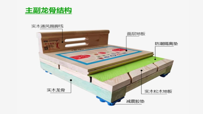 主輔龍骨結構高性能的結構,具有高吸震性和一致性的固定運動木地板系統,良好的環境適應性,適用于籃球,排球,羽毛球專業訓練館等場所。