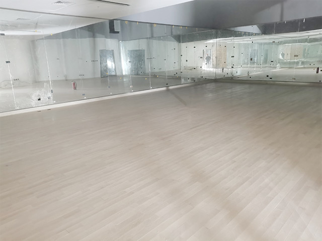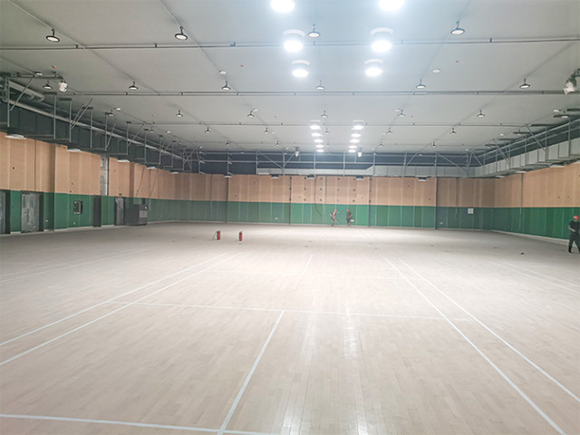 學校的體操室羽毛球館全部采用楓樺木A級LVL雙龍骨結構系統,其中毛地板龍骨面板防火等級均達到B1級環保等級E1級,不僅可以保證場館運動性能達標,而且更加安全,運動過程中更加放心。由于場館位于地下室,地面相對潮濕,使用雙龍骨結構搭配實木通風踢腳線,使木地板的通風性能更好,避免地面潮濕對地板造成影響。