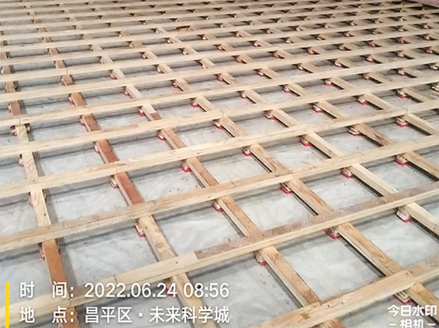 場館共900平米,采用雙層LVL龍骨楓木A級面板,于6月27日進場;