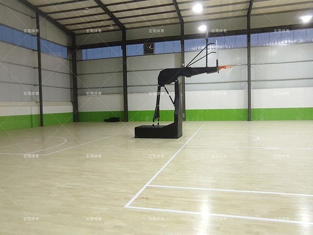 場地共1000平米,分為一個小的U6球場,和標準的籃球場;采用楓樺木A級加密龍骨結構。 面板光潔無瑕,不起毛刺,無結疤無色差,屬于面板中等級較高的;加密龍骨結構的配置,可以很大程度的感受到球體回彈不同,從普通地板球體回彈70%變成90%以上,可以達到比賽場館的要求。底層采用專利膠墊,環??稍偕?,不僅有提高球體回彈的作用,而且可以增加地板的穩定性,提高地板的使用年限。