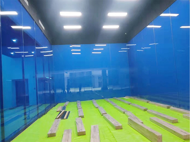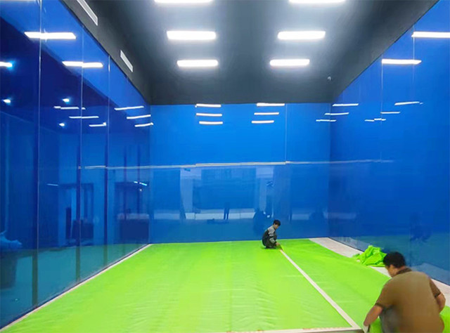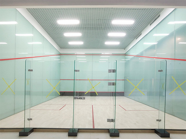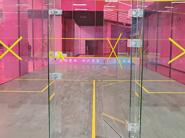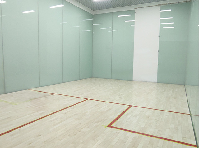 西安博樂里壁球館處于博樂里購物中心內,共6個壁球館,擁有三種顏色,分別為藍色、紅色、白色,其中藍色、紅色壁球館采用顯紋黑色面板,給人很好的視覺體驗。場館全部采用楓木A級面板,面板整潔無色差。采用單層龍骨結構不僅滿足壁球館的運動需求,而且還擁有較高的性價比。