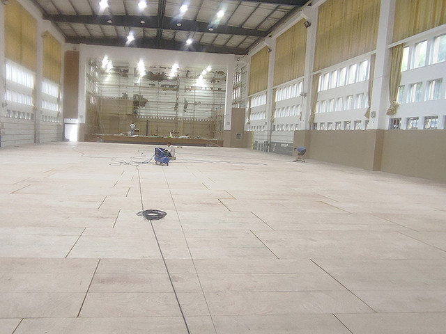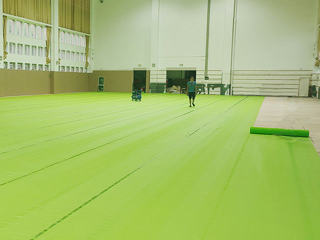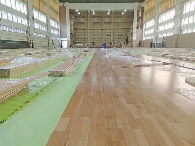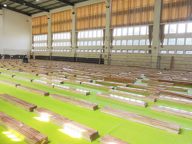 黨灣一小位于浙江省杭州市蕭山區黨灣鎮,景色優美。場館內采用楓樺木D級單層龍骨結構運動木地板,地板上面再鋪一層地膠,適合羽毛球場館的運動特性,同時,性價比很高,使用效果也很不錯