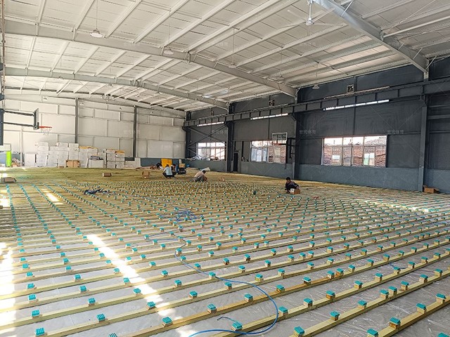 承德地下室壁球館建設項目完工! 靈石縣新動力籃球館木地板鋪設完工