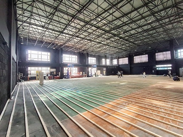 湖北瑞天廣場籃球館運動木地板鋪裝中