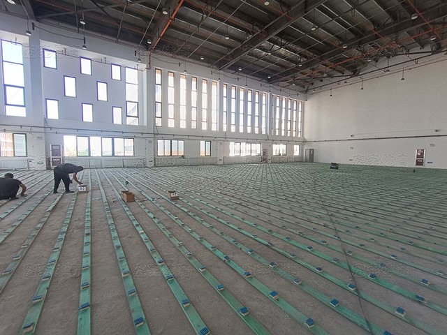 潼關縣岳瀆中學共總建筑面積約16805.06㎡,是一所新建的學校,其中籃球館、舞蹈室占地共1300平米,由宏憲體育承建,為給學生們提供更好的學習和運動環境,該籃球館采用楓樺木C級SPTFL04結構,期待最后完工效果~