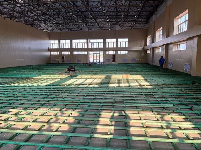 采用宏憲SPTFL01結構,充分保證場地的球體回彈性和通風性能,原木色的地板與周圍淡黃的墻體相呼應,營造更加寬闊的場地氛圍。地板紋路清晰,采用工廠UV紫外防滑耐磨漆,滿足比賽場地規定的防滑標準,使運動員擁有更好的運動體驗。從開始施工到驗收成功,共歷時一周時間,在保證質量的情況下,高效完成鋪裝,校領導們都非常滿意。