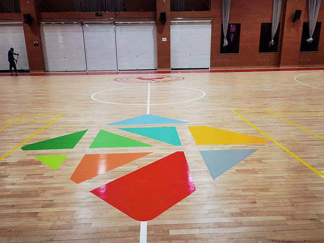 場地采用體育地板進口防滑耐磨漆,且重新調配顏色,做到與學校的?;疹伾3忠恢?,整體翻新完成,場地也恢復如初的活力,與新的場地相差無幾。