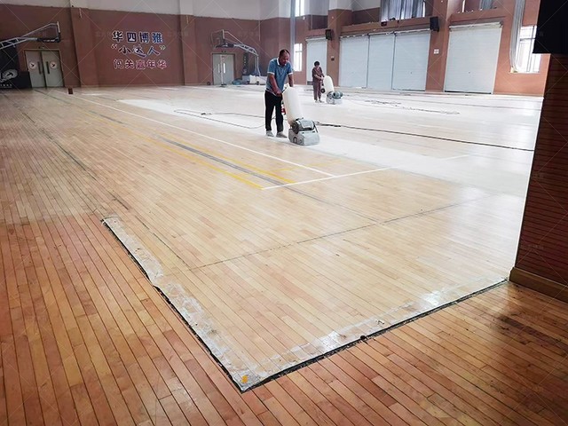場地共900平米,由于原有的場地使用年限較長,防滑系數不達標,部分畫線不清楚,無法滿足學生的運動需求。需對整體重新進行打磨翻新。