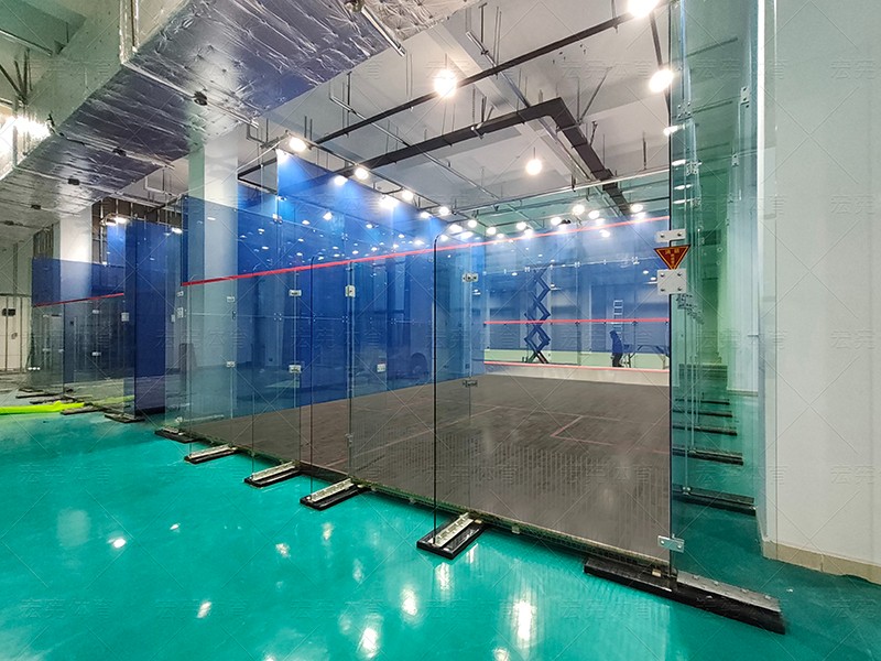 濟寧航空航天產業園全景玻璃式壁球館完工,兩套藍色的壁球館坐落在整體大體育館中心,像是通透的水晶宮殿,具有很好的觀賽效果,更成為體育館內的一大亮點。為了保證打球安全,墻面玻璃全部采用抗擊打安全鋼化玻璃,并且使用宏憲專用高強度五金配件固定,可滿足賽事抗沖擊標準。內部地板根據玻璃墻體顏色搭配黑色面板,增加美觀度的同時,相對于普通地板具有更好的減震防滑效果,相信在整個體育館裝修完工之后,會吸引很多的球員們打球鍛煉。