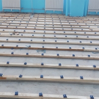 濰坊六百平米籃球館木地板完工! 場館采宏憲SPTFL04系統,標高為9cm,整體結構性價比較高。底層采用烘干防腐松木實木龍骨,防腐、防潮、抗蟲蟻。采用整版整芯、二次成形的實木多層板,無空鼓更耐用,平整度更好。采用防潮隔音效果更佳的淋膜無紡布做為防......