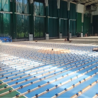 襄都區體育館運動木地板鋪設施工中場館共2400平米,采用楓華木A級面板單層龍骨結構,期待完成的效果吧~...